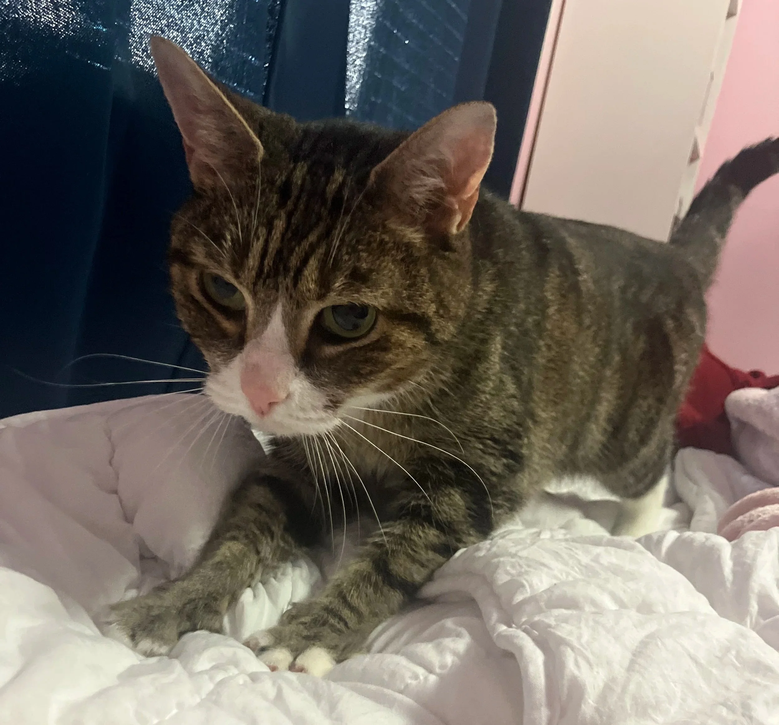 She’s still very nervous, but is finally out and exploring the lounge!