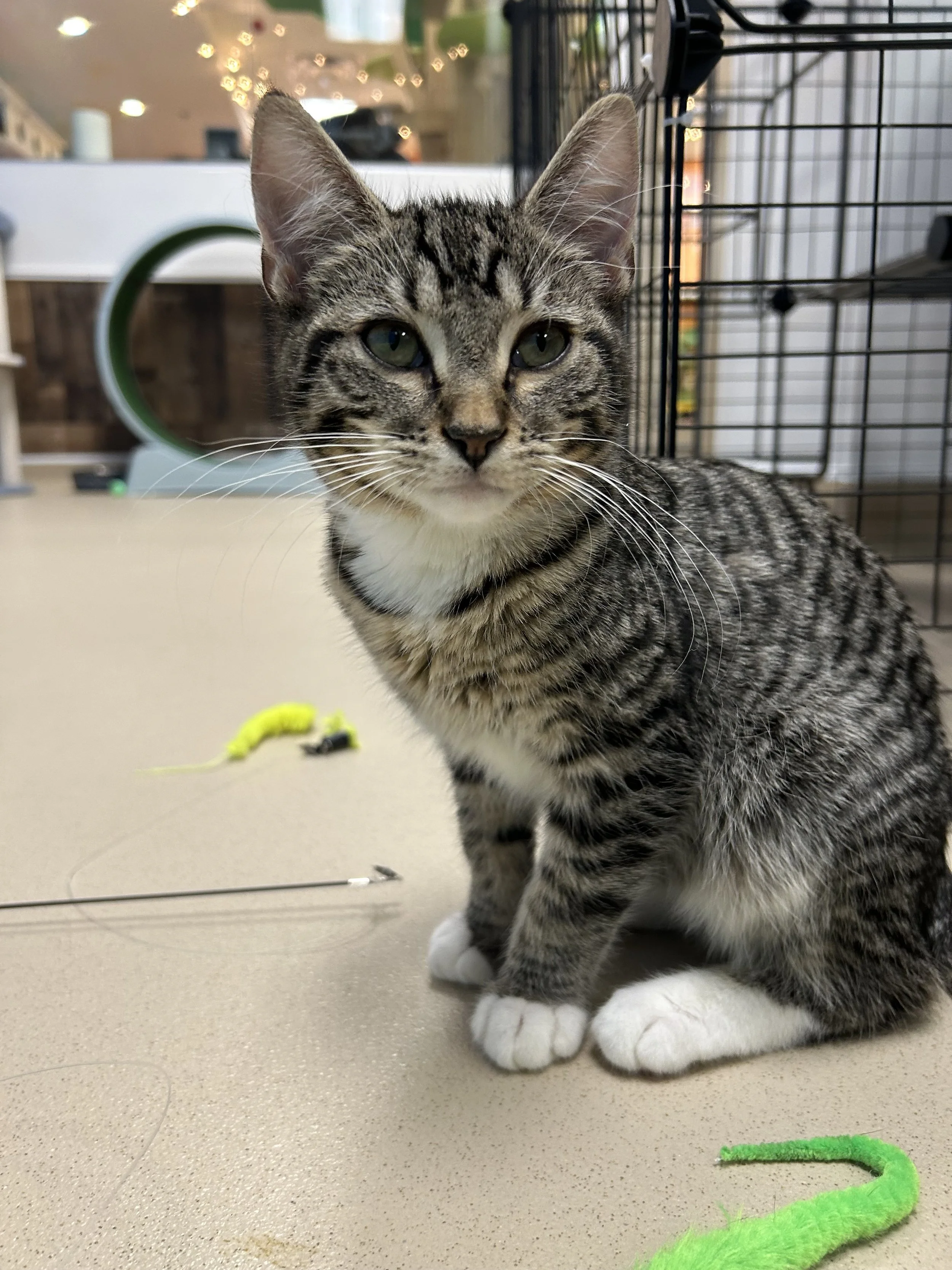 Still a little skittish, Robby and his brother are new arrivals and are having lots of fun exploring the lounge and getting to know the other cats!