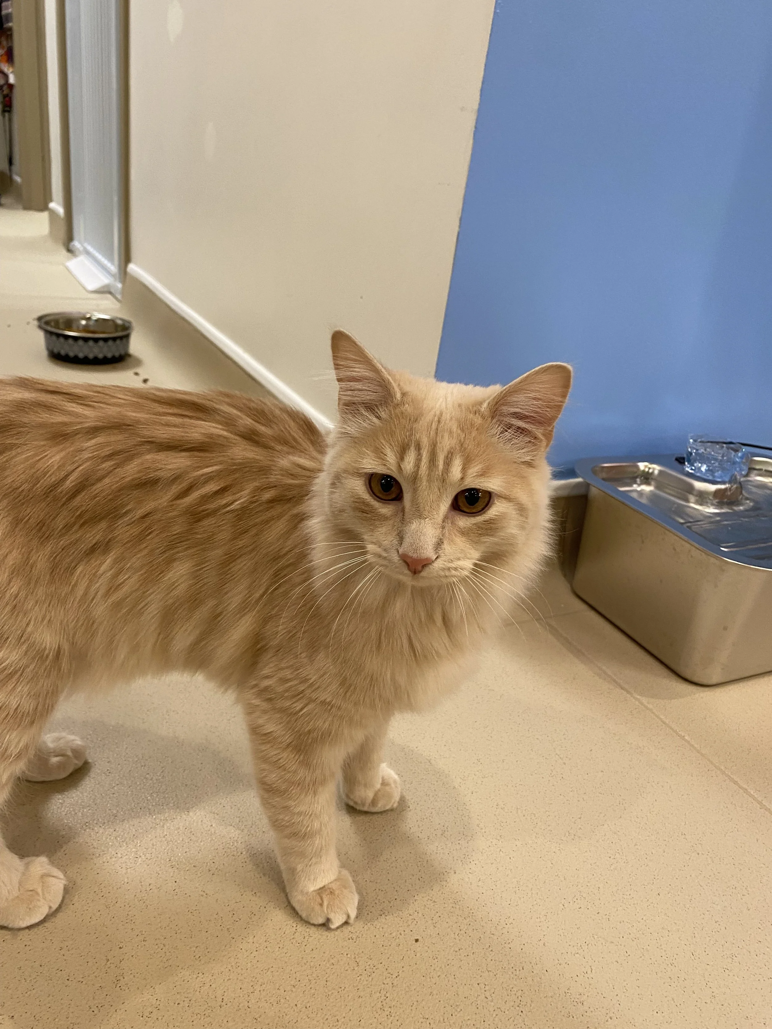 He puts the Tex in texture because his fur is sooo soft. He likes to take a break from cuddling Monti to come and play with everyone in the main lounge every day! Playful and affectionate - what’s not to love?!